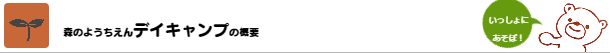 年間10回実施している「森のようちえん・デイキャンプ」は通年のキャンプです。 だいたい月に1回、「みんなの畑」に集まって四季の自然を感じながら五感を使った「外あそび」をしています。 対象は年少さん~年長さん。 保護者の方が一緒に参加できる唯一のキャンプでもあります。